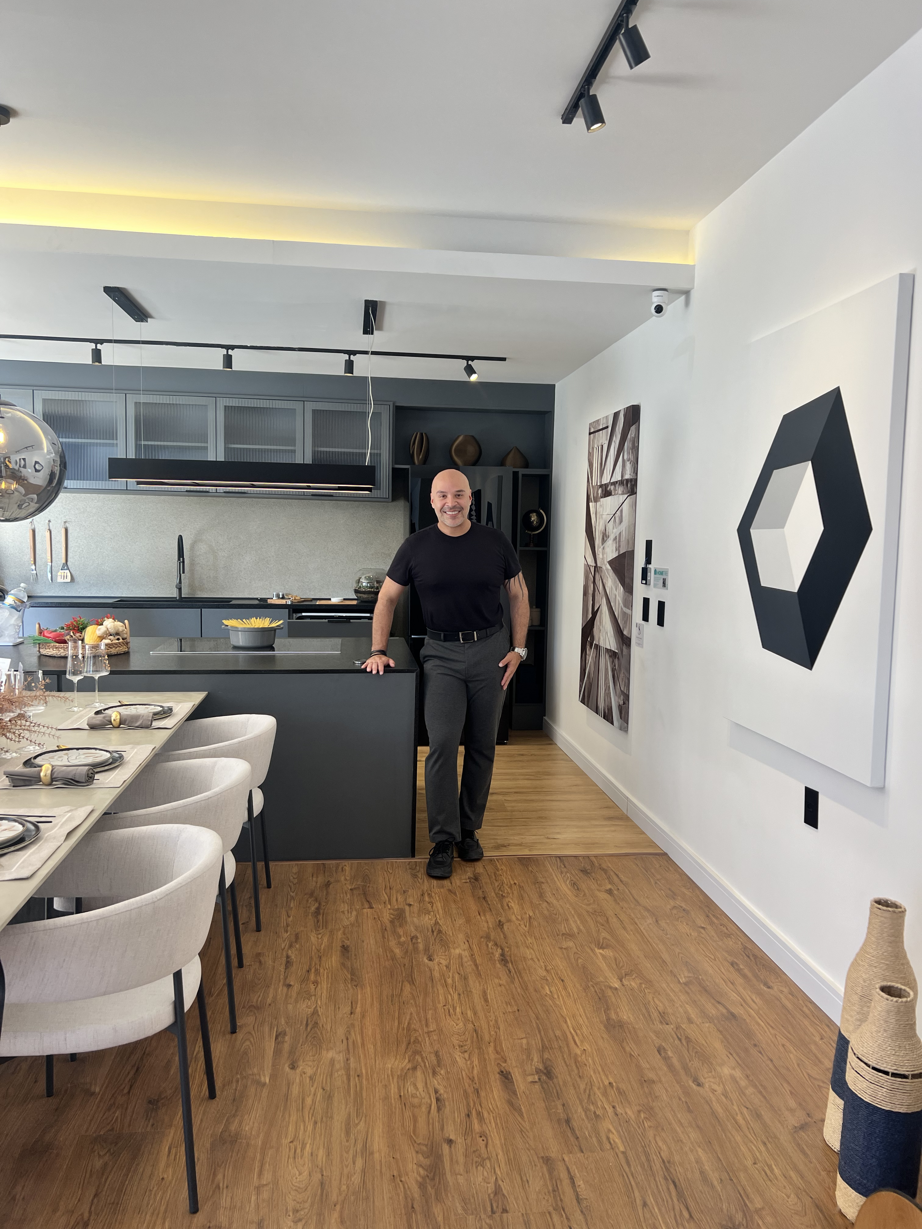 Patrick descreve: “É um open space, uma cozinha integrada à sala, pensado para um cliente como eu, um rapaz entre 30 e 40 anos que busca tranquilidade, lazer com amigos e conforto familiar.”