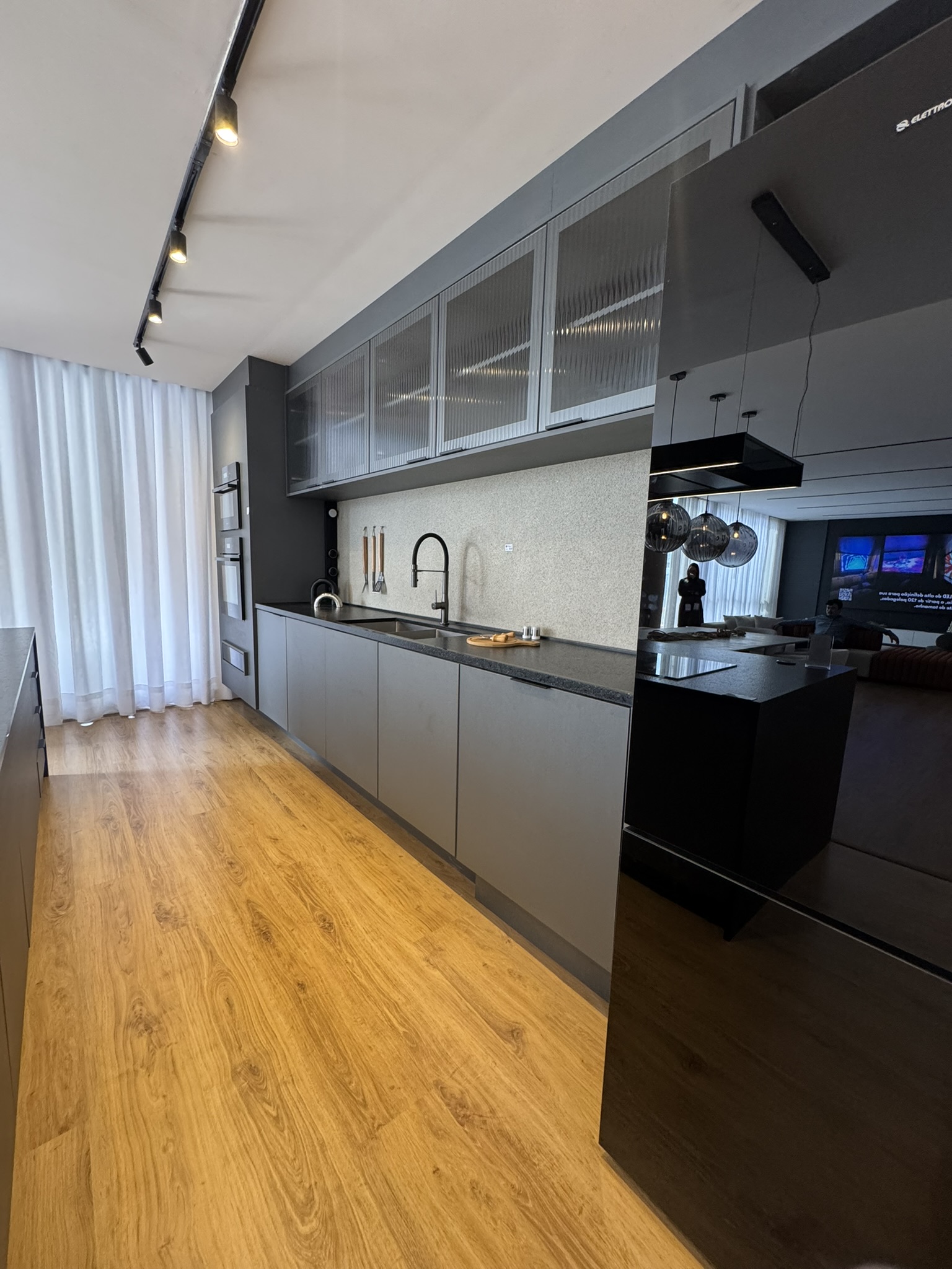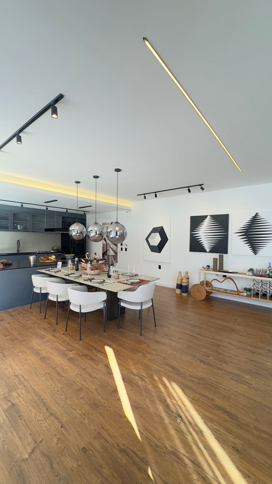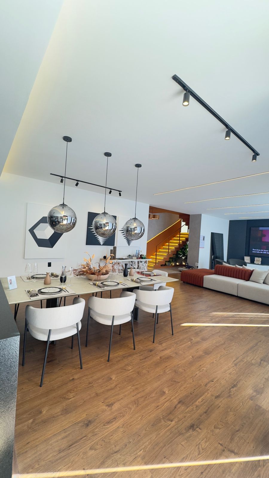 Os espaços contam com pisos laminados e vinílico Quick-Step, unindo estética, conforto e alta performance.